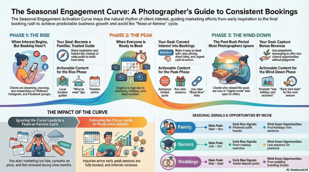 This pattern is called the Seasonal Engagement Activation Curve, and it is the most reliable way to stabilize income in a photography business.